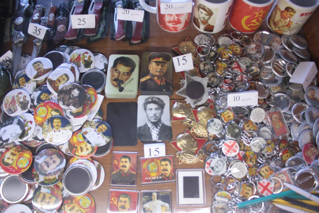 До 2012 года тут висел транспарант: «Этот музей является фальсификацией истории, типичным примером советской пропаганды»Твитнуть эту цитату Узких переулков Старого города, по которым бегал маленький Сосо, не сохранилось. Ради выгодной панорамы вся историческая застройка вокруг дома, где в съемном углу родился вождь, была ликвидирована. Теперь здесь широкая Stalin avenue с фонтанами. По воспоминаниям горожан, недалеко от памятника Сталину работы братьев Курдиани располагался российский КПП — военные обожали здесь делать селфи, среди них якобы и командующий войсками генерал Вячеслав Борисов. Местные жители говорят, что именно ему музей обязан сохранностью во время конфликта в Южной Осетии в 2008 году и генерал чуть ли не хотел забрать памятник при отходе.