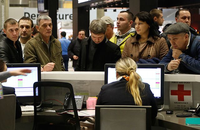 — Нет, никто так и не подошел. Стоим тут как бараны. Я вообще думаю — зачем туда лететь, наверняка подбили, — отвечает мужчина. В этот момент с табло вылета пропала строчка с их рейсом.
