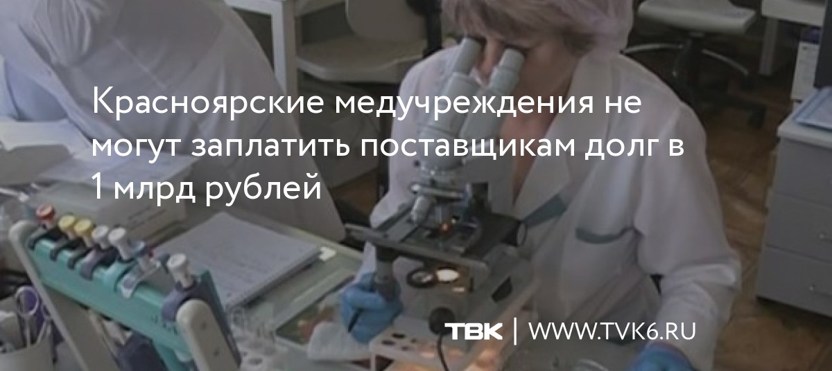 Задолженность лечебных учреждений Красноярского края перед поставщиками расходных материалов и оборудования на октябрь 2015 года составляет более 1 млрд рублей.