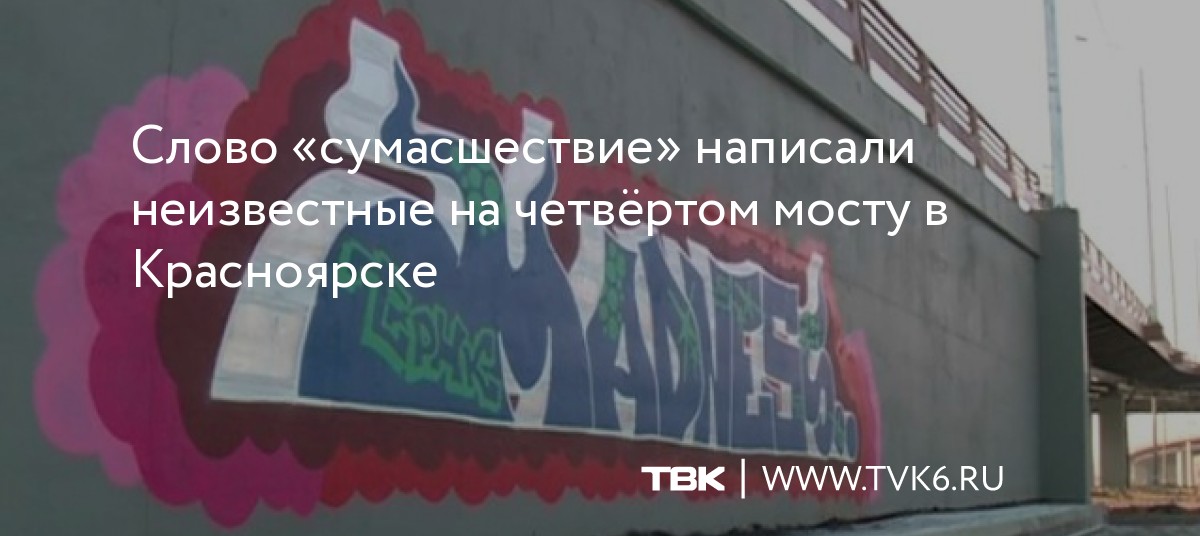 Слово «сумасшествие» написали неизвестные на четвёртом мосту в Красноярске