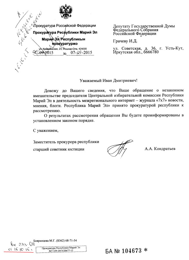 Депутат Госдумы Иван Грачев справедливо посчитал, что председателем ЦИК Марий Эл Николаем Клементьевым превышены его полномочия, так как в статье 25 Закона РМЭ “О выборах Главы Марий Эл” четко указаны полномочия Центральной избирательной комиссии.