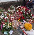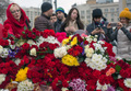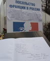 В Москве множество людей пришли к посольству Франции, чтобы выразить соболезнования в связи с терактами в Париже. Перед зданием дипмиссии горят свечи, лежат горы цветов. К ним прикреплены записки с выражениями сочувствия. Несколько человек стоят с плакатами. В книгу памяти пришедшие записывают слова соболезнования.