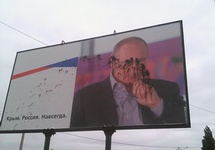 Нападения на билборды с изображением Путина начались в конце лета. Неизвестные срывали портреты или обливали их черной краской. Наиболее часто такие акции проходили в Керчи. Подобное происходило также в Симферополе и Ялте.