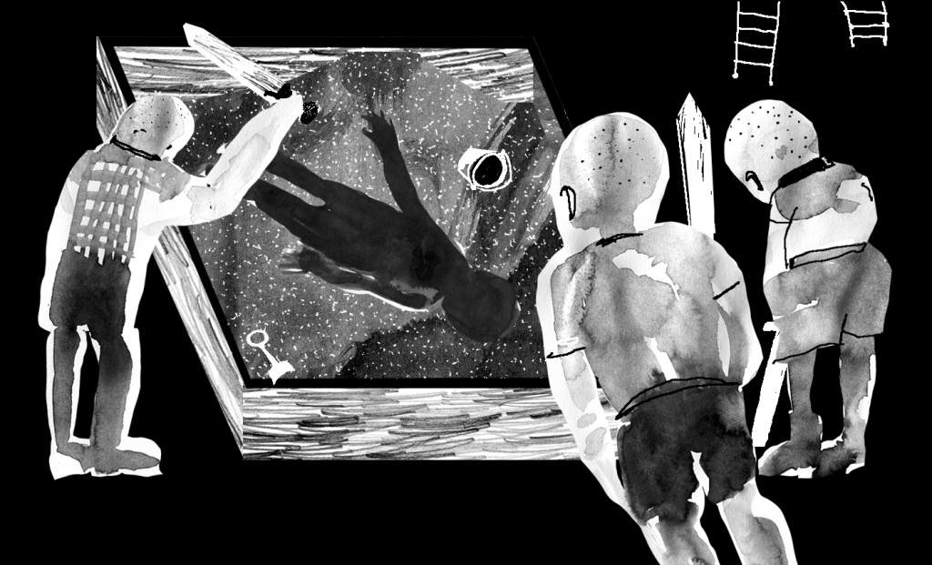 Нас же называли «бригадой Калиниченко». Просто потому, что на момент ареста он единственный из нас был совершеннолетний, и только его фамилию, согласно законодательству, могли публиковать СМИ. А Калиниченко, он вообще такой, слегка отсталый. Некоторые ребята даже пытались писать статьи — мол, «вы что, какой Калиниченко, не позорьте нас». По большому счету, не было никаких отдельных группировок — была одна большая тусовка. Кого с кем поймали, те с теми и стали сидеть. Плюс все, что надумали СМИ — чтобы показать, какие это опасные люди. Иллюстрация: Аня Леонова / «Медиазона»