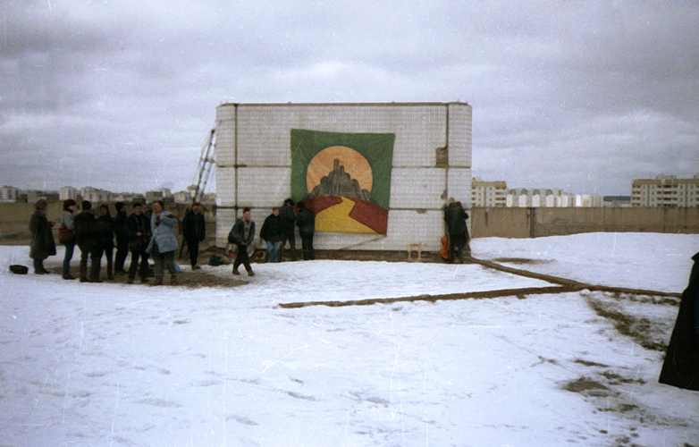 Марина Потапова: Мы в нашей мастерской делали инсталляции из мусора, выходили на митинги с какими-то хоругвями, сделанными из не пойми чего, с безумными лозунгами. Но нам нравилась сама форма демонстрации. Идеологически мы ни к чему не могли присоединиться, это было невозможно: ну к кому мы примкнем, не к коммунистам же замшелым? Но выйти на улицу хотелось. Это чувство, когда ты идешь по Тверской улице, а движение перекрыто и ты предъявляешь свои лозунги миру, — это самое <охрененное> вообще, что было. Это то, что должен каждый попробовать. Особенно мне нравилось, что ты приходишь на первомайскую демонстрацию, а там старушки-коммунистки, которые сами себе сделали плакаты. Эти плакаты уже не имеют отношения к партии, там просто выплеснулось все, что было на душе. И мы так же старались действовать.