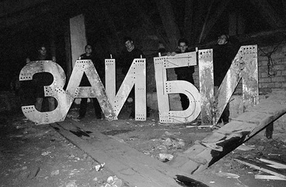 Алексей Фомин: Мы возвращались с одного заибического фестиваля, который проходил на крыше недостроенного дома. И с нами был главный их заибический идиот — Юрий Поповский. Незадолго до прихода нашей электрички он увидел, что между рельсами валяется мертвая раздавленная собака. Поповский спрыгнул, достал баллончик и нарисовал на ней пацифик — это типичный заибический поступок. И когда он начал с полотна подниматься, Усов со всей силы ударил его ногой в грудь с криком: «Над живыми поглумился, теперь за мертвых взялся?!» А электричка-то подходит. В общем, Усова оттолкнули, Поповского втащили, все обошлось. Но для меня «зАиБи» навсегда останется этим пацификом, нарисованным на мертвой собаке.