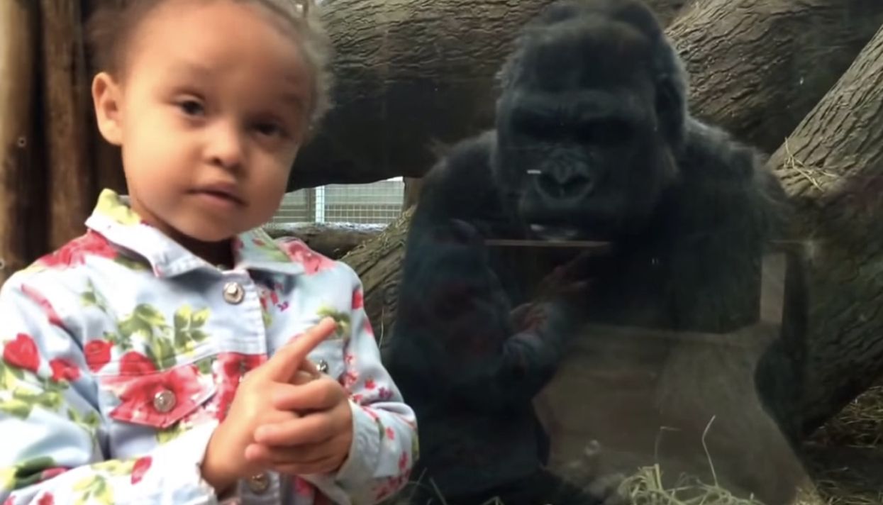 Маленькая девочка пришла в зоопарк Коламбуса и хотела поиграть с гориллой. Но примат был явно не в духе: обезьяна просто сидела на месте и показывала средний палец. В итоге ребенок решил повторить за гориллой и тоже стал показывать неприличный жест.