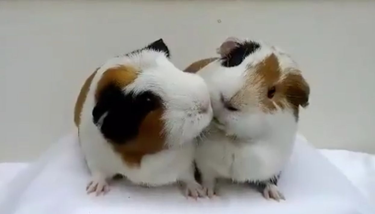 Морские свинки попали в ситуацию, которая была в мультфильме «Леди и Бродяга» — только там собаки поцеловались из-за одной спагеттины.