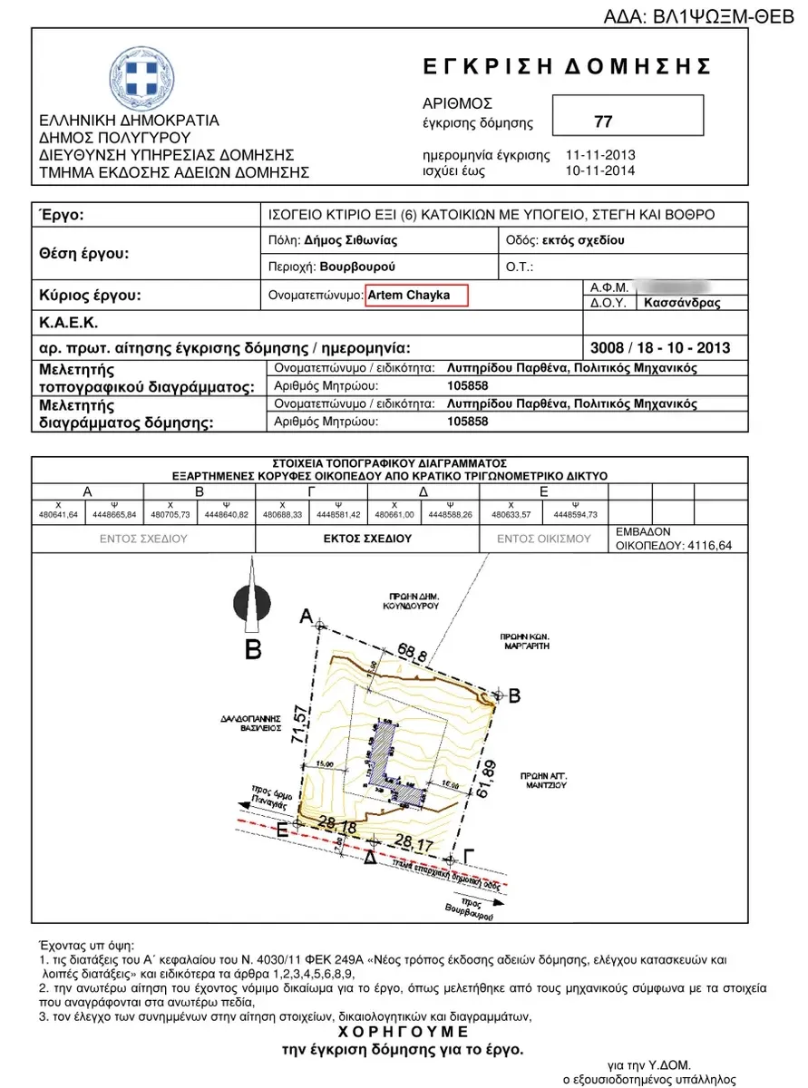 Документы греческой компании были опубликованы в Сети, и первым их нашел Фонд борьбы с коррупцией (ФБК) Алексея Навального. Активисты же ФБК заметили, что в отчетности Portes Melathron Артем Чайка почему-то указал не российские паспортные данные, а документ, дающий ему право на проживание в Швейцарии, где сын замгенпрокурора владеет дорогим домом. «Новая газета» проверила документы ФБК, провела свое собственное расследование и обнаружила, что активы Артема Чайки в Греции не ограничиваются одним отелем.