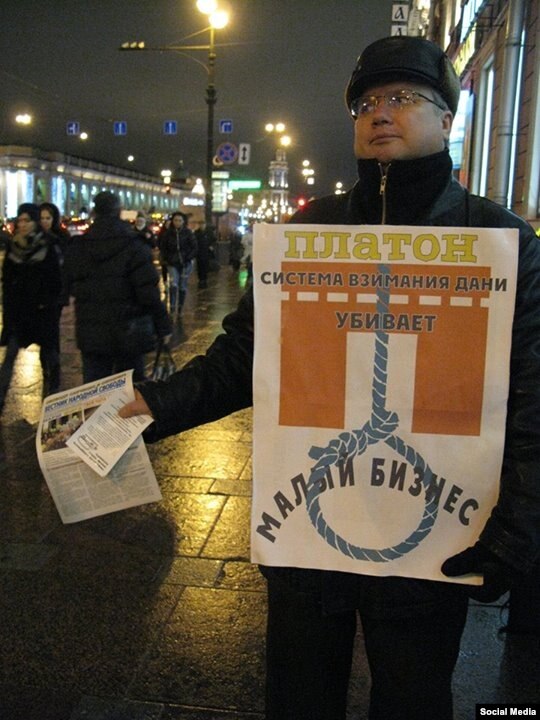 В Петербурге в субботу более 50 человек собрались на пересечении Невского проспекта и Большой Конюшенной улицы, чтобы поддержать требования дальнобойщиков, протестующих против платежной системы "Платон" и платных дорог. Как сообщает корреспондент Радио Свобода Виктор Резунков, в руках участники акции держали плакаты: "Платон" – система взимания дани! Убивает малый бизнес!", "Дальнобой против поборов!". Милиция не препятствовала собравшимся проводить "народный сход".