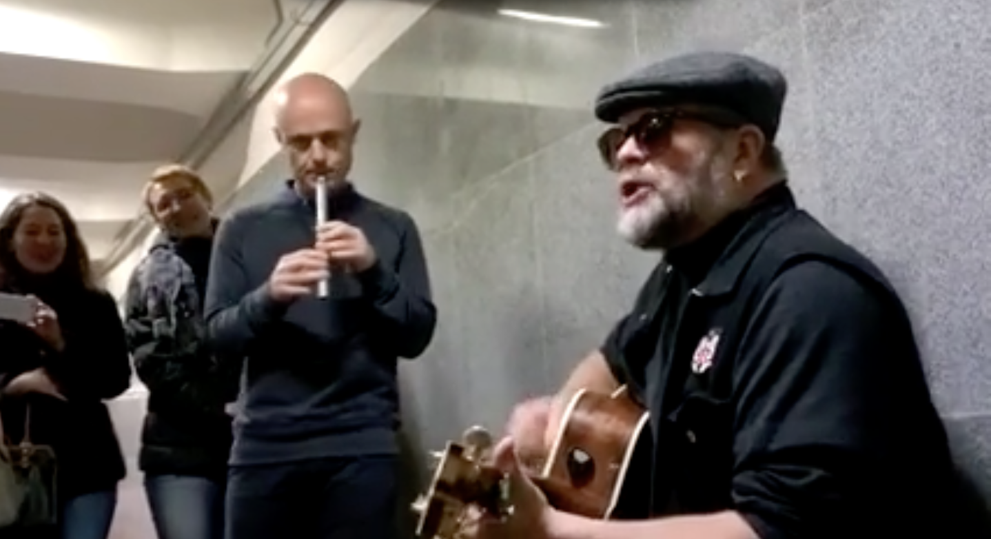 Борис Гребенщиков выступил в переходе московского метро. Фотограф «Московского комсомольца» снял, как он поет где-то на «Тургеневской». Сколько всего исполнил песен музыкант, неизвестно. На видео он исполняет песню «Стаканы».