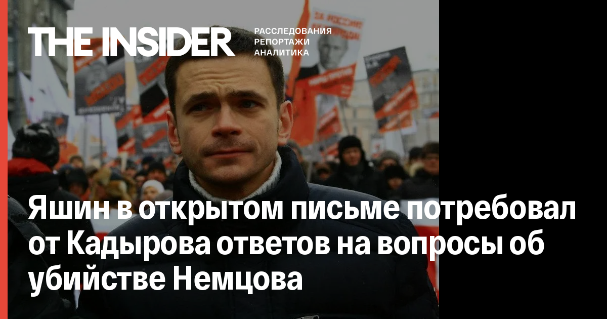 Представители семьи Немцова ранее несколько раз просили Следственный комитет допросить Кадырова по делу об убийстве политика. Глава республики выражал готовность ответить на вопросы следователей, если они возникнут, но в СК не нашли оснований для проведения такого допроса. Адвокат Вадим Прохоров обжаловал это решение в Басманном суде Москвы, однако тот согласился с СКР. Мосгорсуд будет рассматривать жалобу на это решение сегодня. В пресс-службе Кадырова заявили «Коммерсанту», что с текстом письма Яшина пока не знакомы.