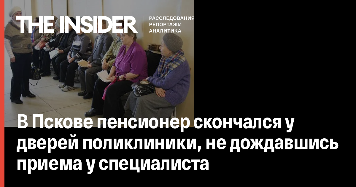 14 December 2015 В Пскове 66-летний мужчина скончался у входа в поликлинику № 2, - сообщает «Псковская лента новостей» со ссылкой на региональное управление Следственного комитета.По предварительной информации, врачи не смогли точно определить причины недомогания пенсионера и стали направлять его к разным специалистам. Чтобы попасть к эндокринологу, и он занял очередь ночью, - рассказали изданию источники, знакомые с ситуацией.