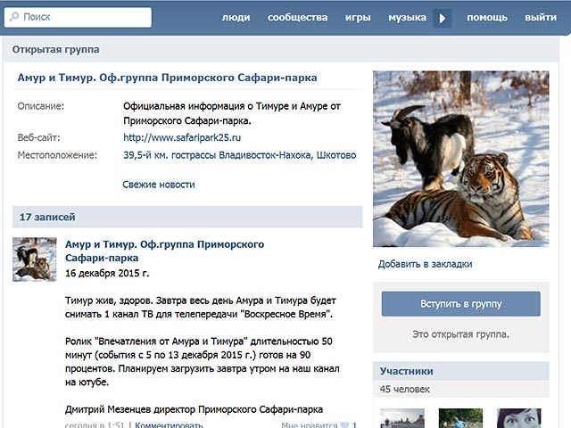 У подружившихся тигра Амура и козла Тимура появились собственные страницы в социальных сетях, интернет-магазин и отдельная страница на сайте Приморского сафари-парка.