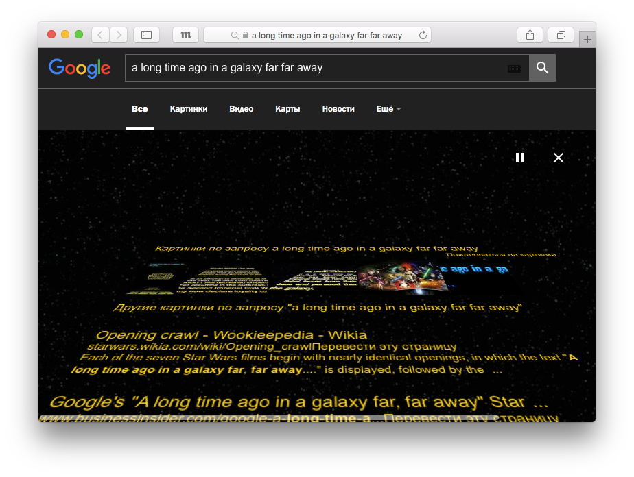 Корпорация Google запустила сразу серию проектов и «пасхальных яиц». Например, если набрать в поисковой строке «a long time ago in a galaxy far far away», то выдача превратится в титры «Звездных войн».
