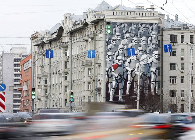 Ярославский художник Артур Кашак нарисовал на семиэтажном доме в Москве гигантское граффити со штурмовиками. Площадь — примерно 350 квадратных метров.