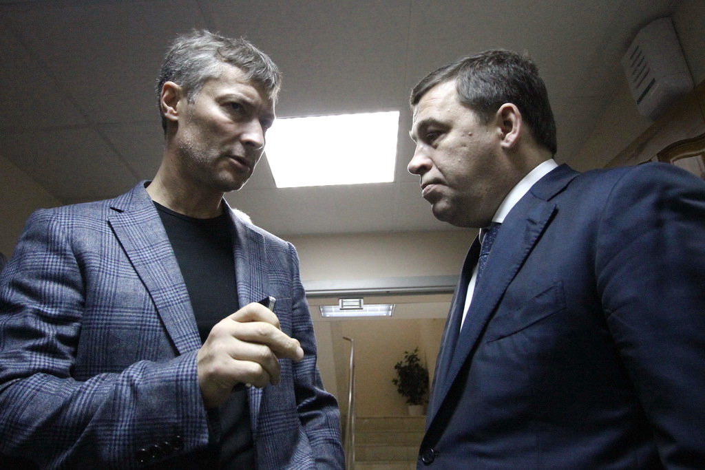 Мэр Екатеринбурга Евгений Ройзман (слева) и губернатор Свердловской области Евгений Куйвашев