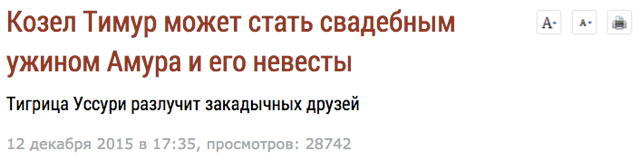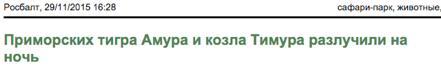 Переселение душ или просто «консерва». Дружба тигра Амура и козла Тимура в заголовках СМИ