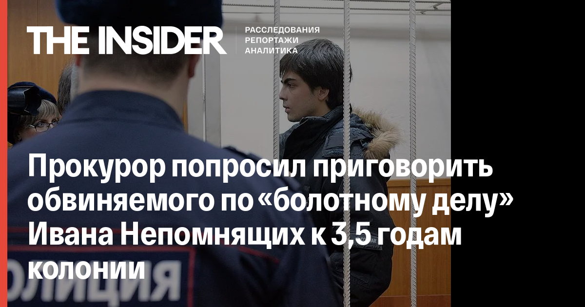 Прокурор попросил приговорить обвиняемого по «болотному делу» Ивана Непомнящих к 3,5 годам лишения свободы в колонии общего режима, - передает корреспондент «Медиазоны» из зала суда.