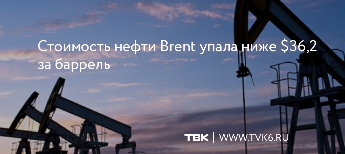 Стоимость нефти Brent упала ниже $36,2 за баррель
