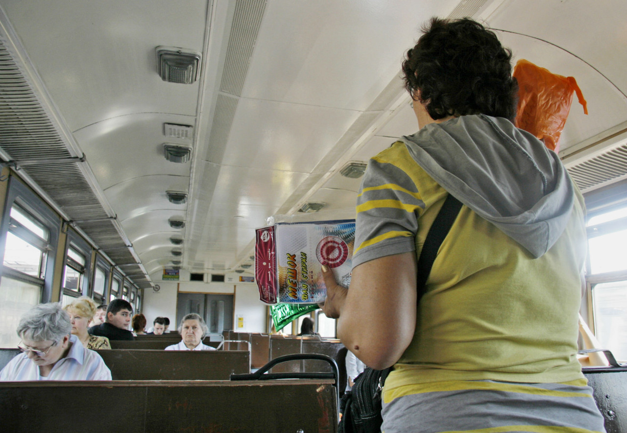 Продажа товаров в пригородном поезде.Фото: Алексей Мальгавко/ТАСС Любые проблемы в государстве порождают некие упадочные настроения, снижения зарплат, общий кризис, торговля падает. Случился Париж, сбили самолет, пара дней прошло, и чувствуется, как люди перестали покупать. В ноябре на нашем направлении торговля упала на треть-четверть из-за этого всего, я думаю. А может, и на всех направлениях.