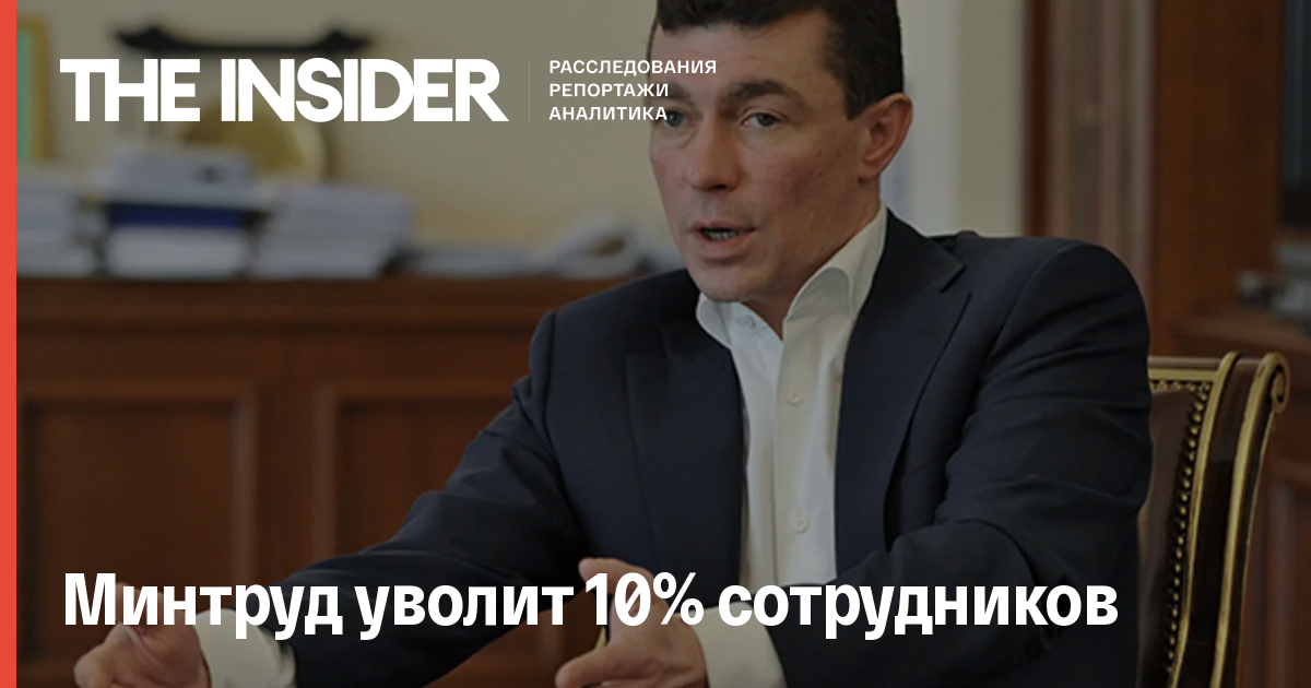 Министерство труда намерено уволить 10% сотрудников, рассказал глава ведомства Максим Топилин, его слова передает РИА «Новости».