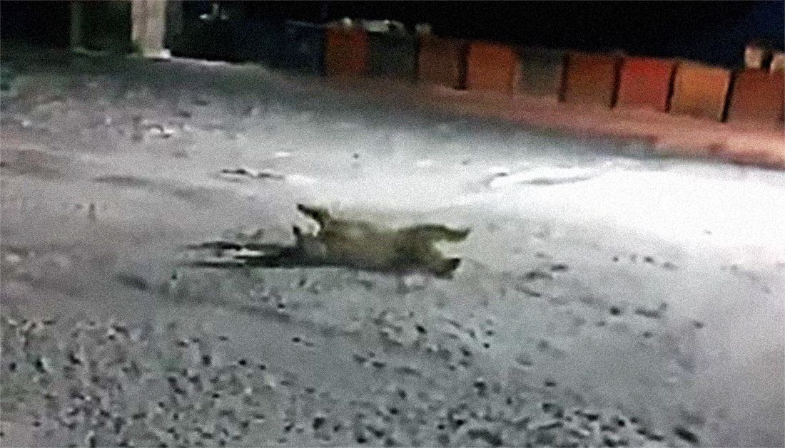 In the video, according to the voices off camera, the bear apparently tried to eat a firecracker, though workers didn't understand at first what had happened. Later in the video, one of the men off camera says, "Poor bastard." In the video, the workers also discuss whether the bear would be able to break into their compound.