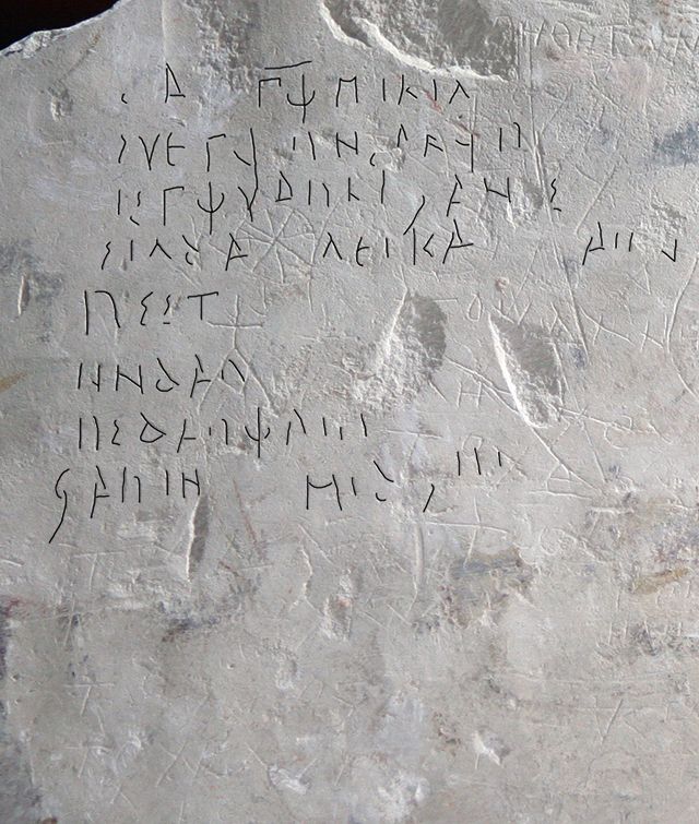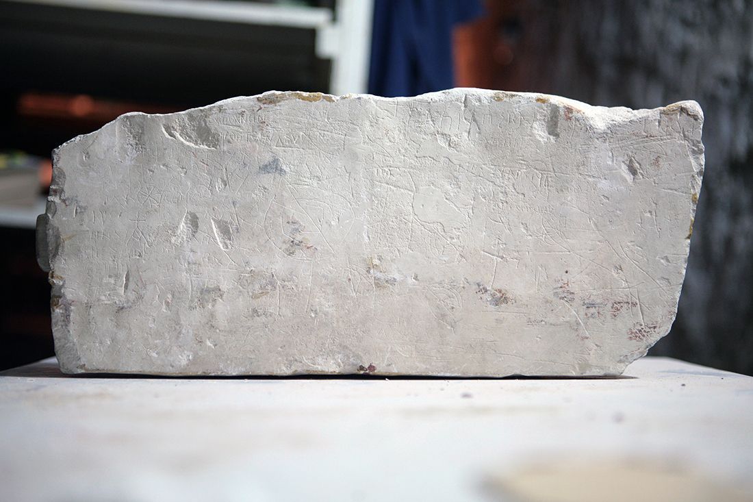 И вот мы стали расшифровывать по фотографиям, и выяснили, что на одном камне есть четыре готские надписи, на другом — одна. Они все сделаны разными руками, то есть это писали пять разных человек. И это точно не подделка — во-первых, их перекрывают греческие граффити, они догреческие. Во-вторых, два камня, видимо, с самого начала хранились отдельно, и в инвентарных книгах они с самого начала идут раздельно. И, в-третьих, на них видны следы длительного бытования — сколы, потертости. Сами надписи вырезаны — иногда грубо, иногда очень уверенной рукой — каким-то острым орудием.