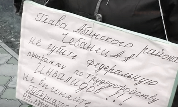 Инвалид 1 группы провела одиночный пикет у стен администрации Абинского района