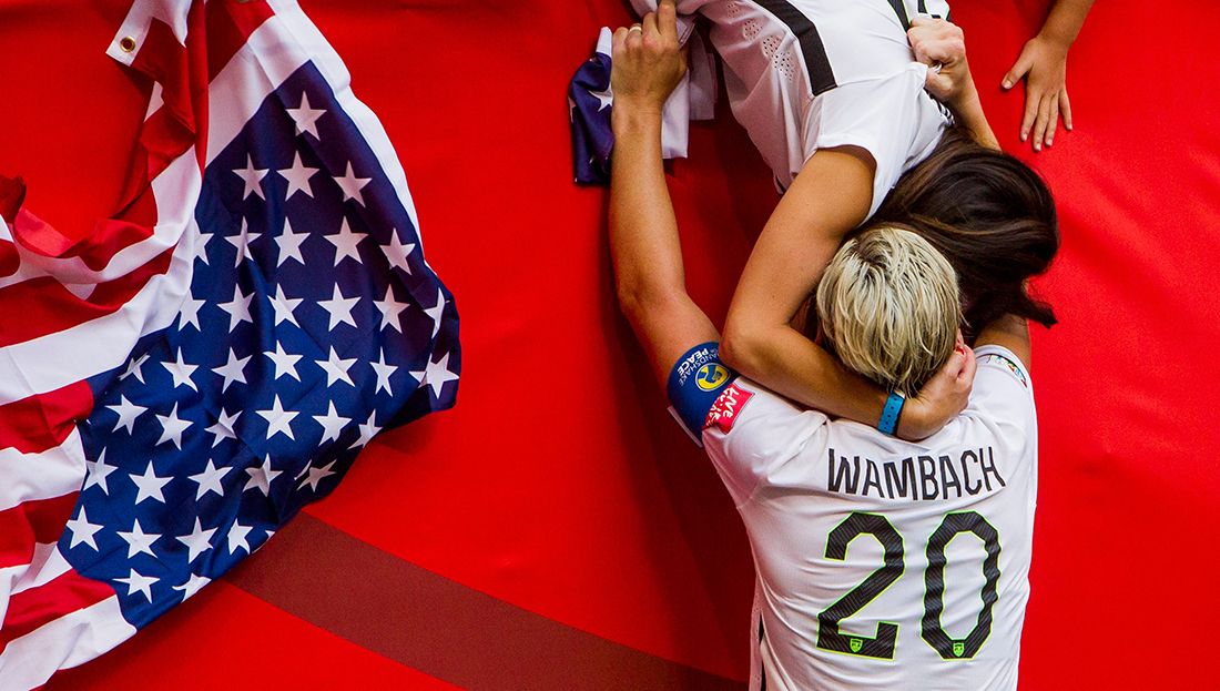 Американская футболистка Эми Вамбах празднует победу своей сборной над сборной Японии в финале чемпионата мира среди женщин в Ванкувере.