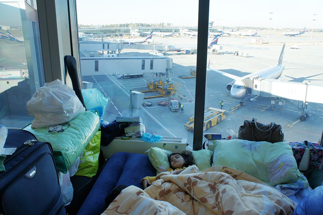 Семья курдских беженцев в аэропорту Шереметьево. Семью из шести человек, пытавшуюся укрыться в России, обвинили в попытке въехать в страну по поддельным паспортам. После того, как они прожили в аэропорту несколько месяцев, их оштрафовали и перевели в центр временного содержания в Тверской области. В статусе беженцев им было отказано.