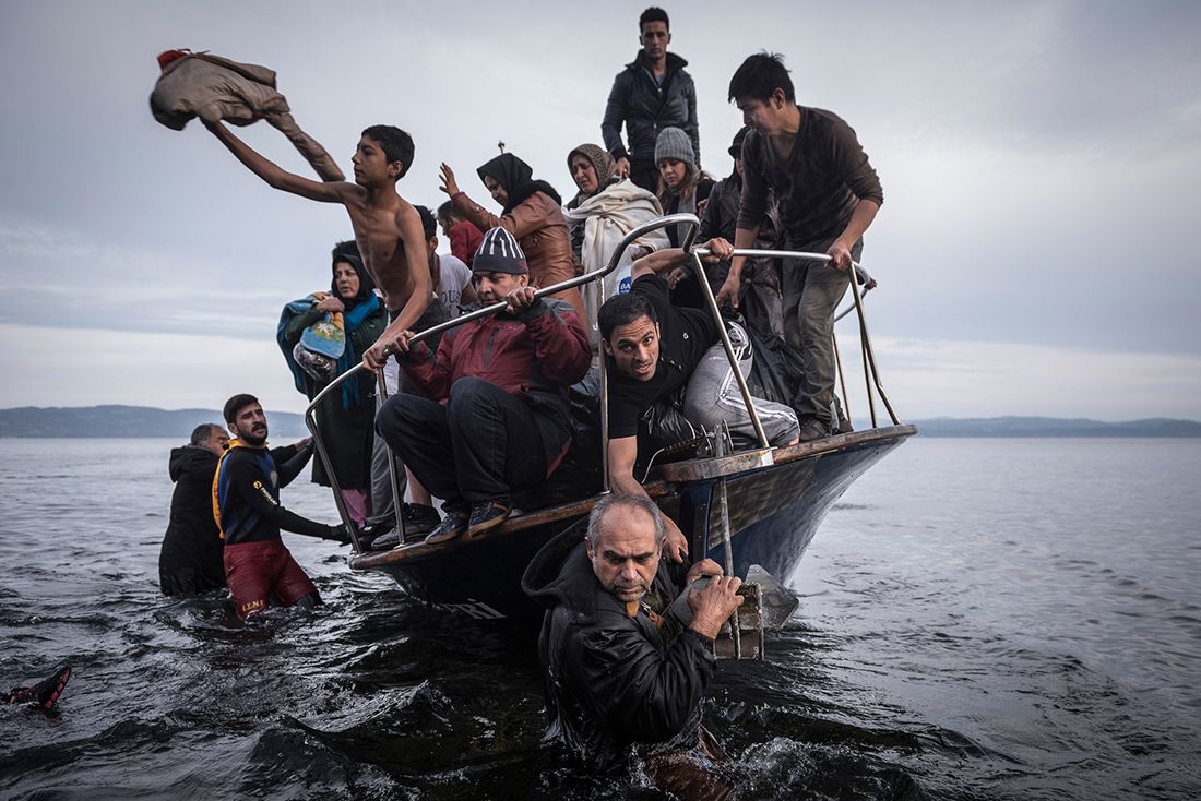 Беженцы высаживаются на греческий остров Лесбос. Владельца турецкой лодки, на которой они приплыли, впоследствии арестуют. В 2015 году в Европу из Сирии и других стран приехали более миллиона беженцев.