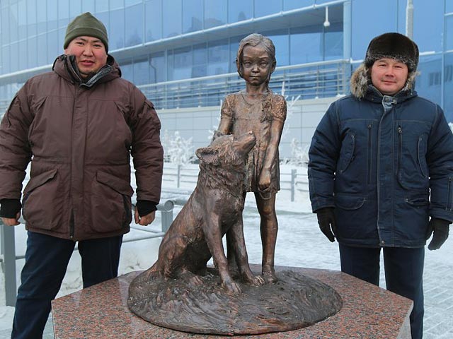 В Якутске установили памятник трехлетней девочке и ее щенку, чудом выжившим в тайге (ФОТО)