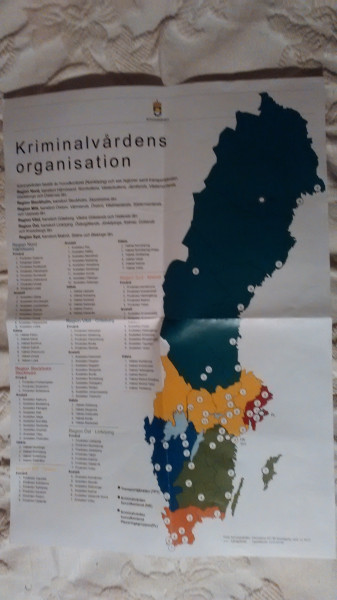 Но для начала хотел бы показать вам карту всех мест лишения свободы, которые есть в Швеции. Напомню, что такую карту свободно выдадут вам при посещении любой тюрьмы Швеции. 119 тюрем, в каждой из которых не более 50 человек.
