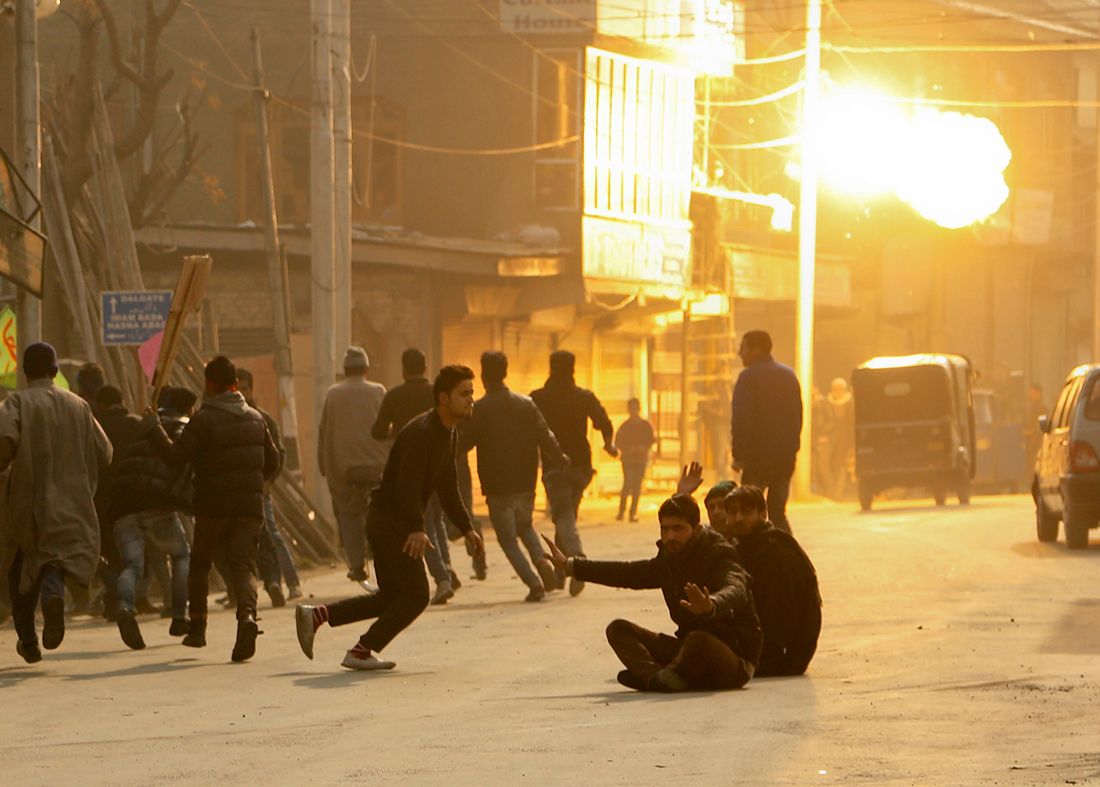 Полиция разгоняет демонстрацию шиитов в индийском городе Сринагар, штат Джамму и Кашмир. 3 января 2016 года