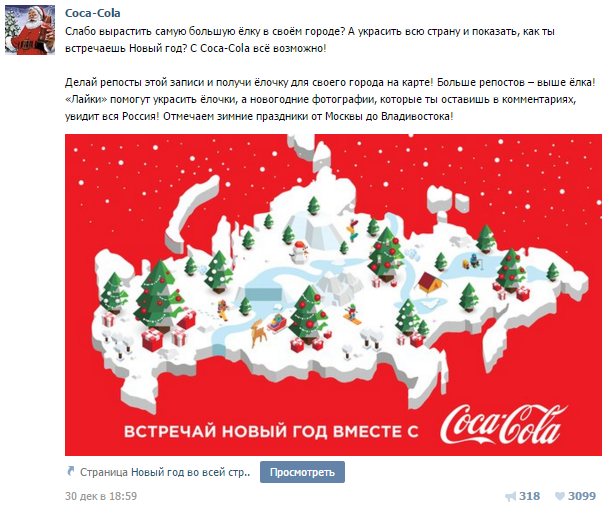 On December 30, the company posted on Vkontakte (Russia's most popular social network) a map of the Russian Federation, introducing a New Year's marketing campaign. On January 5, following complaints that the map did not include Kaliningrad, the Kuril islands, or Crimea (which Russia formally absorbed on March 18, 2014), Coca-Cola published an apology, posting a new map of Russia that included these territories. The message read, “Dear community members, we sincerely apologize for this situation! The map has been corrected! We hope you will understand.”