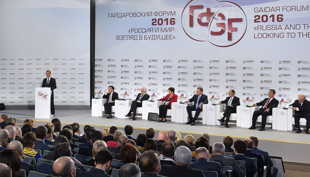 Гайдаровский форум — одна из немногих площадок, на которых собираются вместе как представители Минфина, Минэкономразвития и Центробанка, так и экономические эксперты, не связанные (по крайней мере, сейчас) с властью — например, руководитель Комитета гражданских инициатив Алексей Кудрин. В условиях падения цен на нефть до уровня 30 долларов за баррель они соревновались в том, кто сделает прогноз мрачнее. При этом премьер-министр Дмитрий Медведев уверял, что ситуация хоть и сложная, но хорошая, а вице-премьер Игорь Шувалов вообще сказал, что правительство за год не совершило ни одной крупной ошибки. Может быть, поэтому президент России Владимир Путин уже после завершения работы форума заявил, что не будет ничего «резко менять» в экономике.