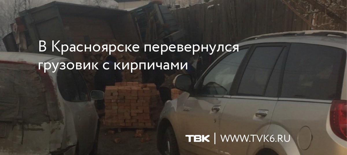 В Красноярске перевернулся грузовик с кирпичами