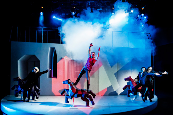Большой русский роман — не самый очевидный материал для дебютировавшего в Театре наций петербургского режиссера Максима Диденко. Начинавший у Антона Адасинского в DEREVO, он более других молодых героев современной российской сцены наследует традициям пред- и постперестроечного петербургского андеграунда, одновременно вполне последовательно присягая на верность идеалам русского авангарда ХХ века. В прошлом сезоне Диденко ставил спектакли по стихам Даниила Хармса («Хармс. Мыр» в «Гоголь-центре») и немому фильму Александра Довженко («Земля» на Новой сцене Александринского театра) — в этом ряду Достоевский выглядит как будто чужаком, что, однако, не мешает режиссеру поставить «Идиота» в органичном для себя жанре клоунады. Или «клоунады нуар», как уточняет жанровую спецификацию спектакля сам Диденко. Артисты носят цирковой грим, иногда надевают маски — кстати, остроумно придуманные и вполне самодостаточные — и скачут на игрушечных лошадях: прозаичному вагону третьего класса режиссер предпочел поэтическую гоголевскую тройку. Привычно внимательный к возможностям тела, Диденко отказывается от слов, сохранив лишь несколько монологов, а «психологию» заменяет пластическими этюдами.