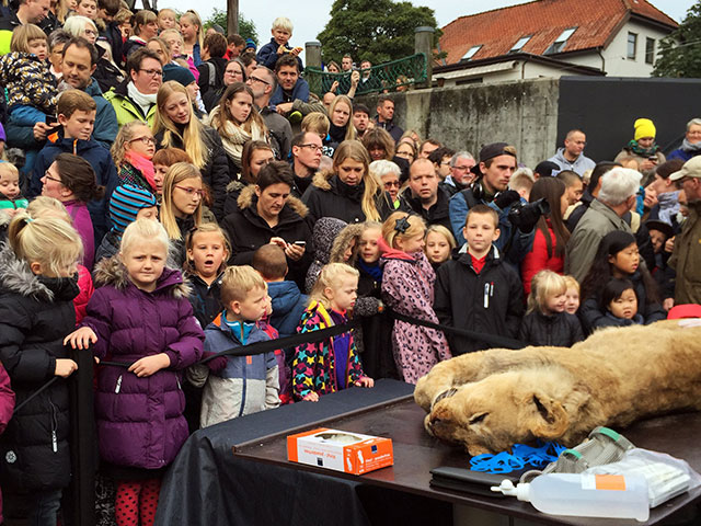 Сотрудники зоопарка в датском городе Оденсе провели публичное вскрытие льва для посетителей. Как сообщает местный телеканал TV 2 Fyn, жители встретили мероприятие с большим интересом: люди приходили целыми семьями и приводили с собой маленьких детей.