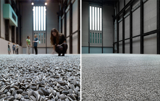 © MoMA «Без названия (Плацебо)» Феликса Гонзалес-Торреса Что же касается Ай Вэйвэя, то, как известно, художник в своем творчестве часто формально опирается на утопические амбиции конструктивизма относительно построения «нового мира», при этом создавая достаточно тонкие политические произведения. Сделанные вручную фарфоровые семена подсолнечника, 10-сантиметровым слоем покрывающие площадь в 1000 кв.м, можно интерпретировать как символ «культурной революции» в Китае (1966—1976) с ее культом личности правителя Мао Цзэдуна, которого верные подданные называли Солнцем. Под его палящими лучами Поднебесную охватили массовые репрессии против интеллигенции, произошел разгром общественных организаций, упал уровень культуры и образования. Словом, всходы впечатляли. Опять же это отсылает не только к нашему прошлому, но и к современным реалиям. Ай Вэйвэй подвергается политическим преследованиям у себя на родине. Как тут в очередной раз не вспомнить о репрессиях, которым были подвергнуты многие деятели культуры в Советском Союзе?