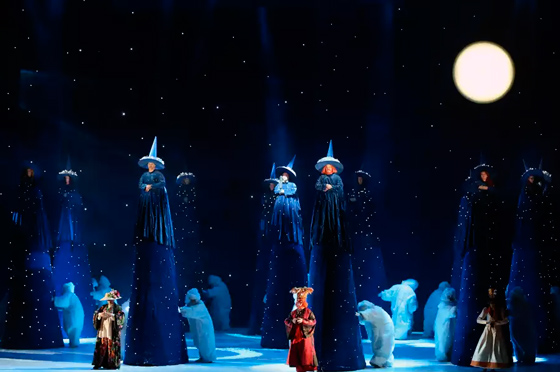 © Мариинский театр Если упоминания о санкциях забавляют взрослых зрителей, то гигантские поющие синие конусы — приведенных с собой детей. Имеется в виду, что спектакль предназначен для возрастной категории 6+. В связи с чем особую ценность представляет буклет с картинками, полным текстом либретто и очаровательными, человеческим языком написанными пояснениями на полях про то, кто такие «речитатив» и «каватина», с чего это 12 месяцев поют вдруг «Seid umschlungen, Millionen» и что «для создания фантастического эффекта композитор указал арфе и деревянным духовым импровизировать в течение 14—18 секунд». И да, Родион Константинович не скрывает свой поклон в сторону «Щелкунчика», обозначая жанр нового творения как «опера-феерия». Хотя лично мне больше вспоминается опера Римского-Корсакова «Золотой петушок».