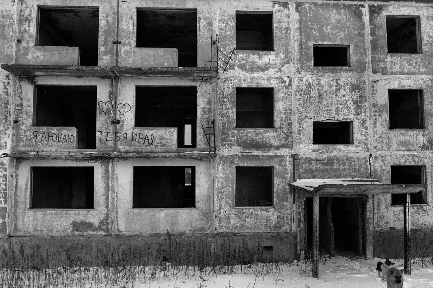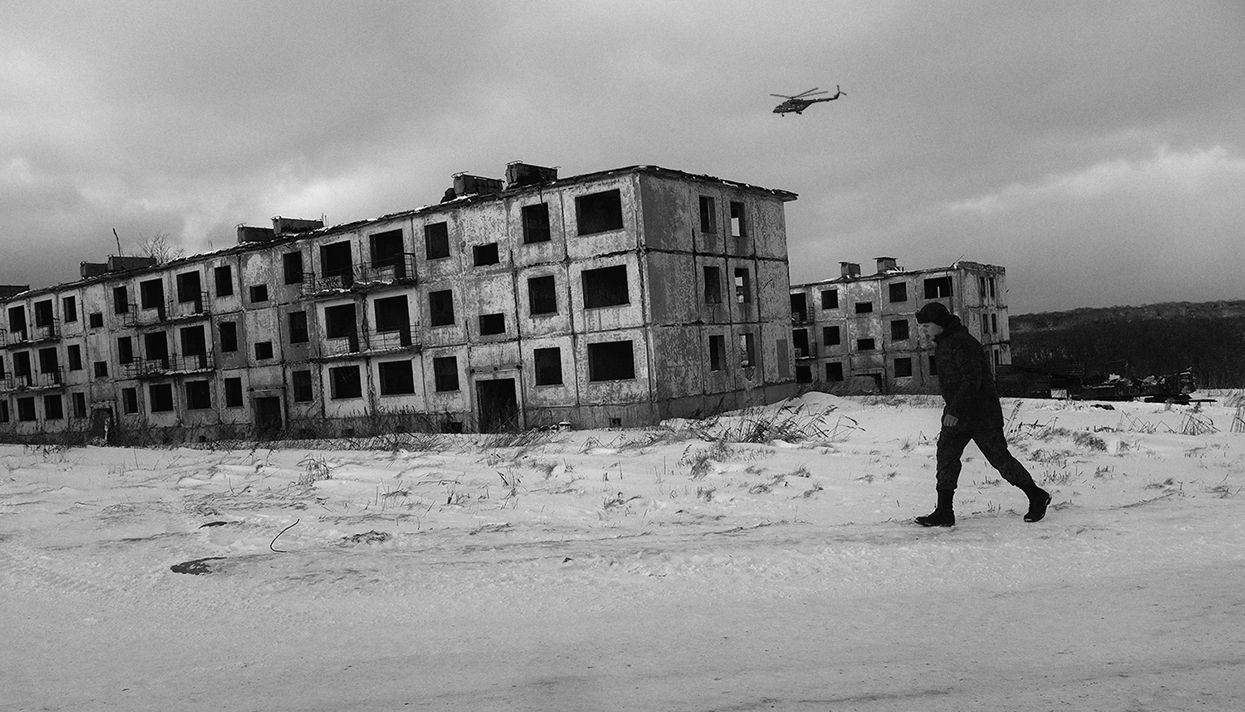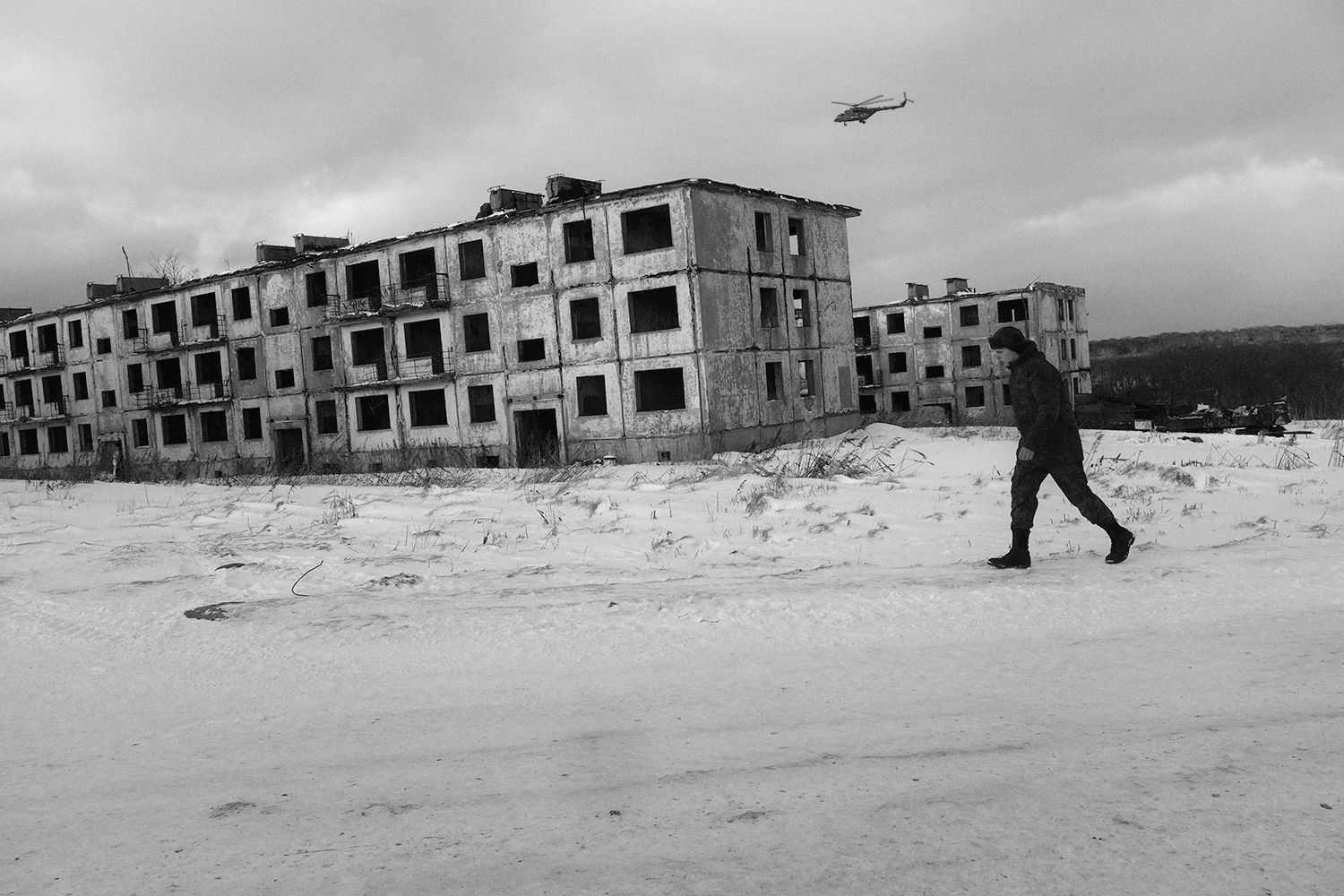 The military town Gornoe was built in the early 1980s on Iturup, one of the Kuril Islands, facing Kasatka Bay. It was settled by the families of artillery, helicopter pilot, and fighter pilot regiments, which were stationed nearby. To this day, Kasatka Bay on Iturup Island is thought to be “the most suitable landing point for a potential adversary.” In the 1990s, however, two of the regiments were disbanded, and part of Gornoe's residential area and administrative buildings were abandoned and later looted. An earthquake in 1994 completely destroyed the town's infrastructure.