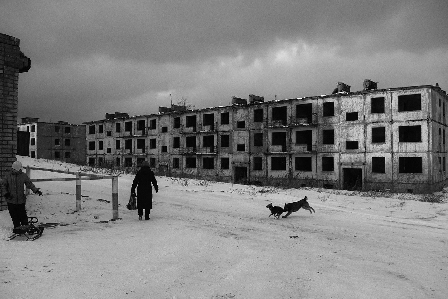 Gornoe became a ghost town in July 2005, when then Defense Minister Sergei Ivanov noticed the settlement while flying overhead in a helicopter en route to Burevestnik airbase. Looking down on the destroyed buildings, he asked the soldiers with him, “What's the story with the ghost town?” Unmysteriously, someone in the group answered, “Nobody lives there.” Since then, Gornoe has disappeared from all military and strategic maps as an “inhabited locality,” but the land and the buildings still standing continue to be listed as Defense Ministry property. Only the town's people aren't listed, though they're still there, alive.