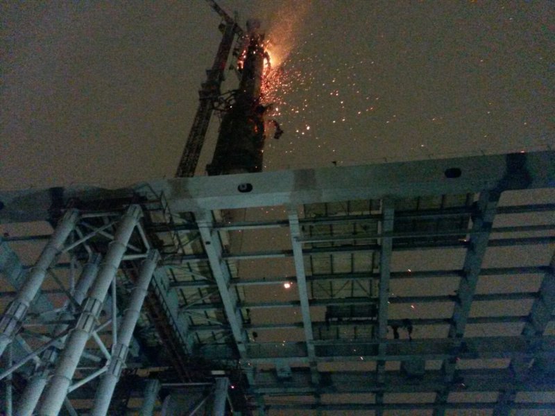 Крановщица спасла рабочих из огня при пожаре на опоре ЗСД