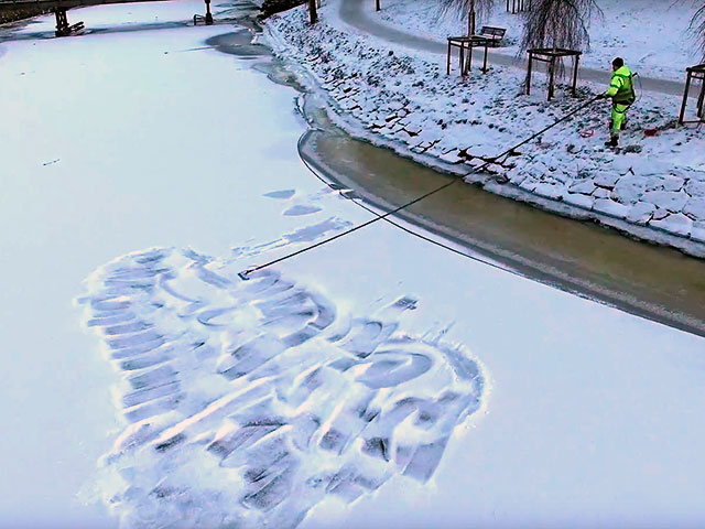 Позднее в интернете появился ролик, на котором изображен процесс "стирания пениса" с заледеневшего пруда в парке Кунгспаркен и его "переезд" на другой заснеженный "холст".