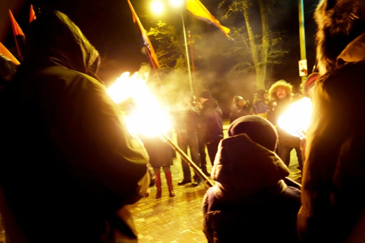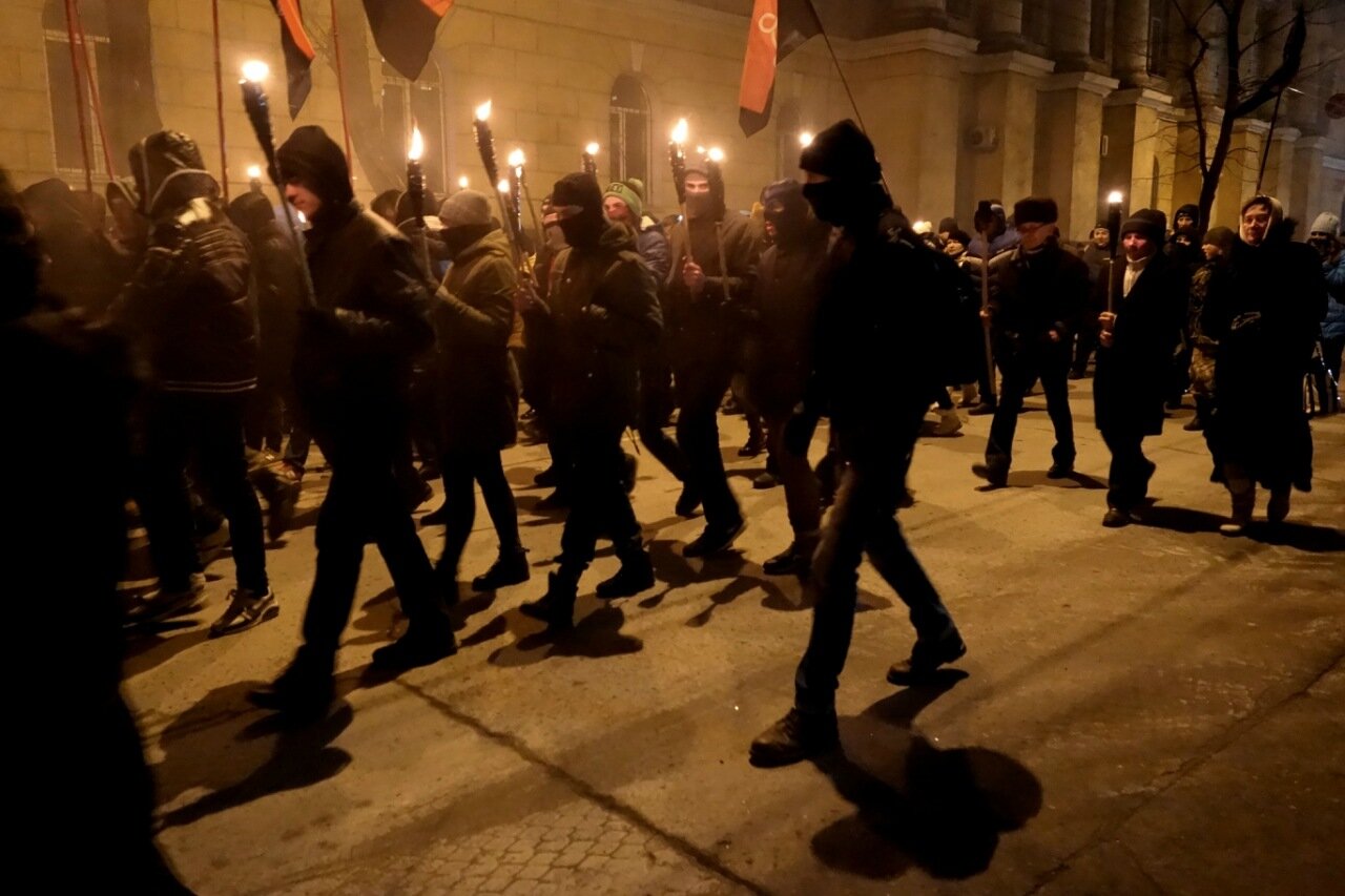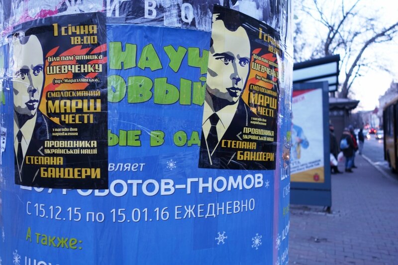Никто лучше не подходит для этой роли, чем Степан Бандера. Соответствующая политика памяти предполагает систему "напоминалок" об этом. Одним из наиболее ярких и убедительных напоминаний о Бандере как пограничном столбе между исторической мифологией Украины и России являются ежегодные факельные шествия первого января - в день рождения Степана Бандеры. Это "напоминалка", широко продаваемая в СМИ.