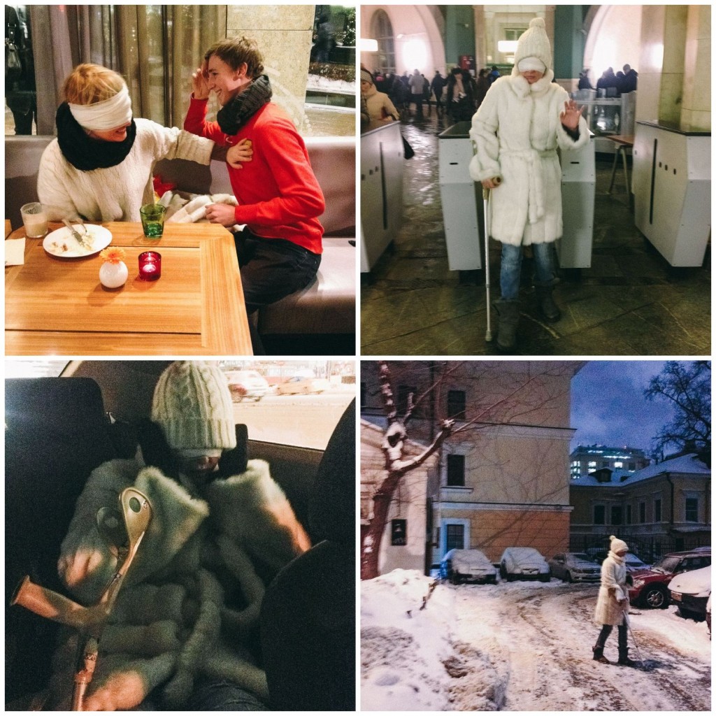 «Кать, — кричу я, — ты здесь?». В ответ ничего. «Эй, Катя, ты тут?» Снова ничего. К горлу впервые подкатывает ком. Игра перестает быть игрой. Да, я прекрасно знаю, что на глазах у меня повязка, а в ушах наушники с музыкой, которую я упорно не слышу. Да, я точно знаю, что сестра и фотограф Маша где-то рядом, и они меня точно не бросят, бинт на моем лице декоративный, я в любой момент могу сорвать с лица эту чертову повязку. И вообще, через какие-то десять часов все это кончится. Но все это больше не имеет значения. Я думаю только о том, каково это жить всегда запертым в этой темной коробке с глухими стенами. И мне кажется, что с каждой минутой, которую я провожу, лежа на кровати, стенки этой коробки становятся все толще и толще. Кажется, что меня здесь забыли, и теперь так будет всегда. Я так и буду лежать всю жизнь в этой пустоте, как в холодной ванной. За большой палец берется теплая рука. Катя. Когда я понимаю, что она рядом, мне хочется расплакаться от счастья и никогда больше не отпускать этот палец. Она берет мою ладонь и медленно пишет на ней пальцем буквы — «Е», «Д», «А». По одной букве, как младенец, читаю я. Надо вставать и идти готовить есть.