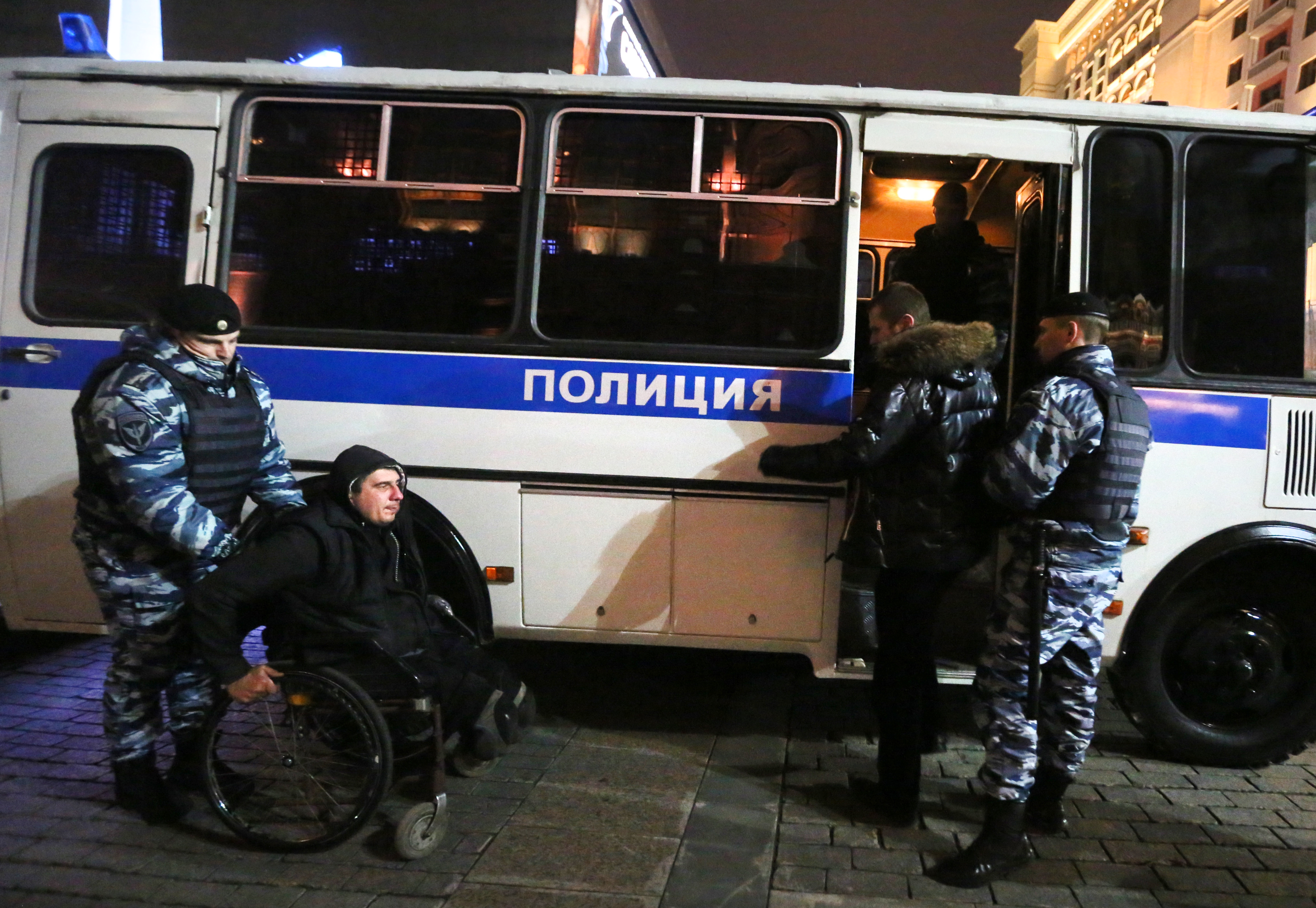 По данным "ОВД-Инфо", перед задержанием к активистам подошли представители радикального "Национального освободительного движения" и стали обзывать их "фашистами". После этого активисты свернули плакат, а полиция начала проводить задержания.