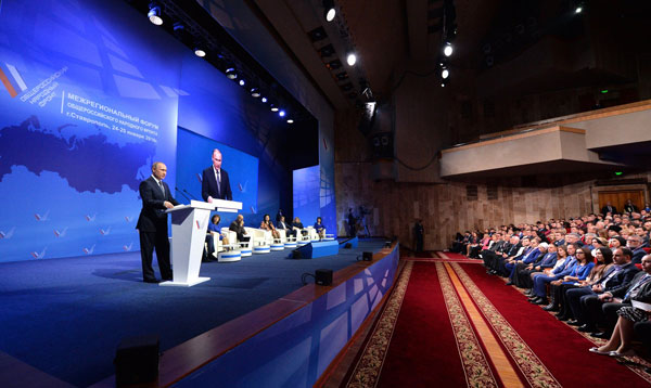 Выступление Владимира Путина Фото: kremlin.ru В понедельник Владимир Путин выступил на межрегиональном съезде ОНФ в Ставрополе. Непосредственно речь президента была короткой, зато потом он отвечал на вопросы — и тут он смог высказаться почти по всем темам, которые сейчас российское общество связывает с главой государства.